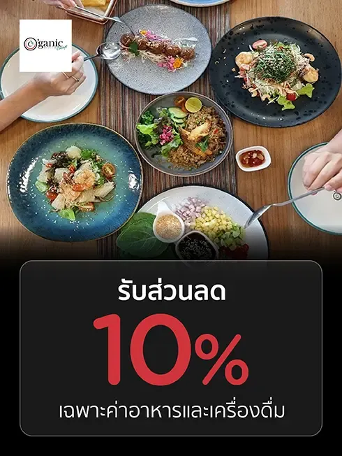 รับส่วนลด 10% เฉพาะค่าอาหารและเครื่องดื่ม เมื่อทานครบ 1,000 บาท / เซลส์สลิป