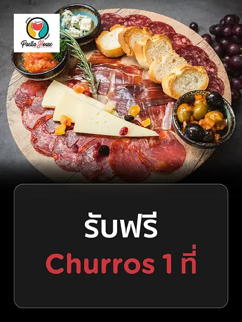 รับฟรี Churros 1 ที่ มูลค่า 295 บาท เมื่อทานครบ 3,000 บาท / เซลส์สลิป