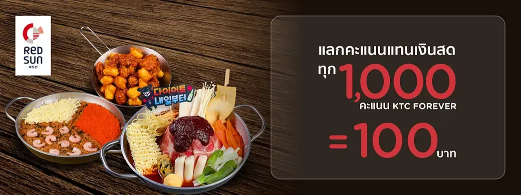 แลกทุก 1,000 คะแนน KTC FOREVER แทนเงินสด 100 บาท