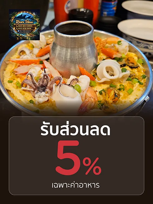 รับส่วนลด 5% เฉพาะค่าอาหาร เมื่อทานครบ 1,500 บาท/เซลส์สลิป