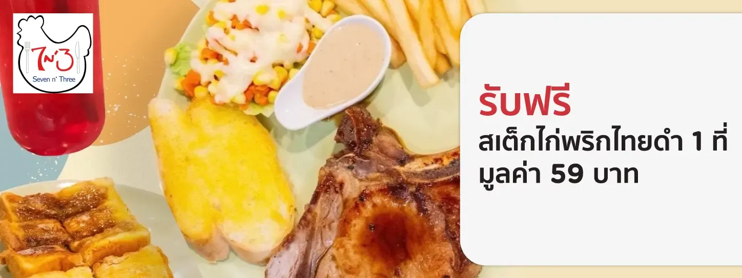 รับฟรี สเต็กไก่พริกไทยดำ 1 ที่ มูลค่า 59 บาท