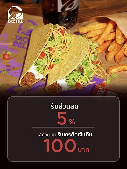 - สมาชิกที่มียอดใช้จ่ายผ่านบัตรฯ ต่อเซลส์สลิป ณ ร้านค้าที่ร่วมรายการ จะได้รับส่วนลดทันที 5% เมื่อมียอดใช้จ่ายผ่านบัตรฯ 300 บาทขึ้นไป/เซลล์สลิป ของราคาสินค้า/บริการปกติ