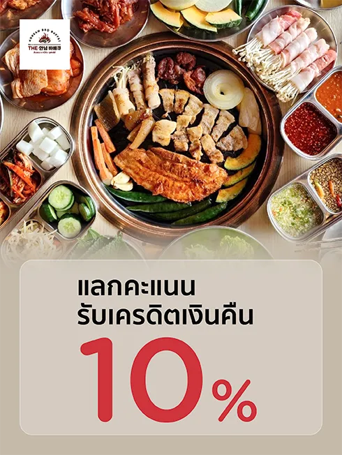 แลกคะแนนรับเครดิตเงินคืน 10% (เฉพาะบัตรเครดิต KTC ที่มีคะแนน KTC Forever เท่านั้น) เมื่อใช้คะแนน KTC FOREVER เท่ายอดใช้จ่ายต่อเซลส์สลิป
