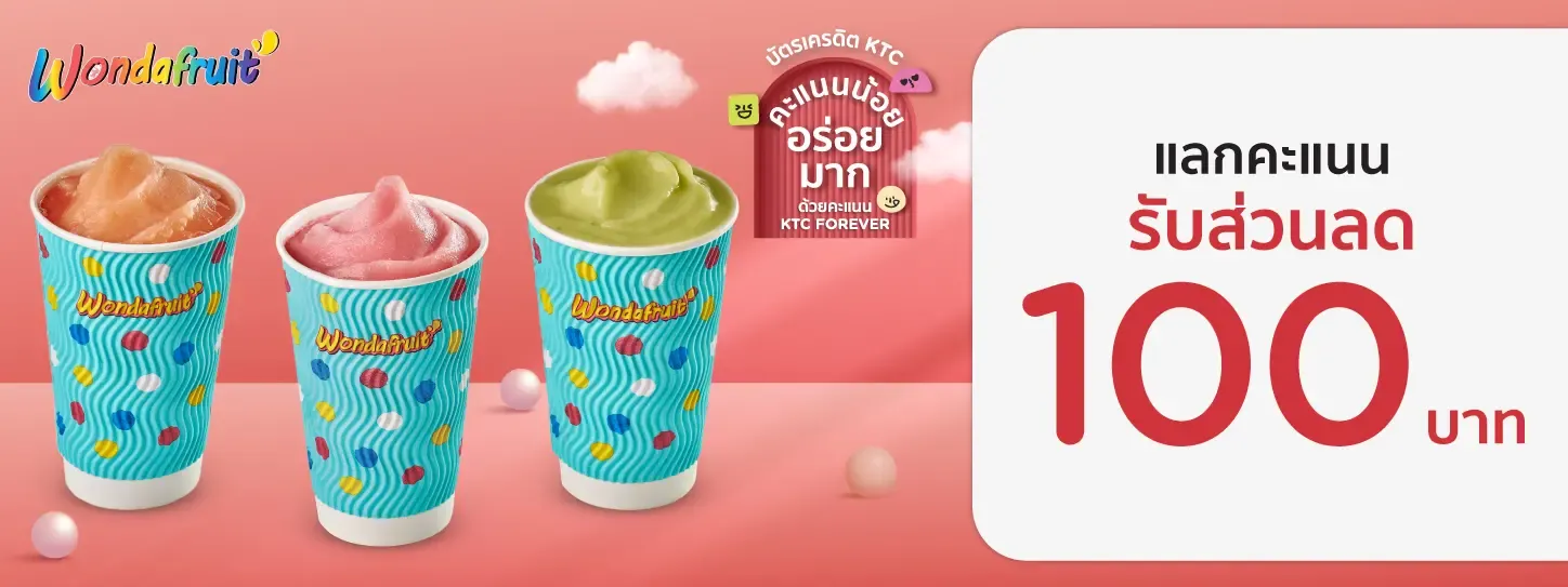 - สมาชิกสามารถใช้ 799 คะแนนแลกรับ Wondafruit Juice Bar มูลค่า 100 บาท ผ่านแอป KTC Mobile ภายในระยะเวลารายการและเงื่อนไขที่กำหนด