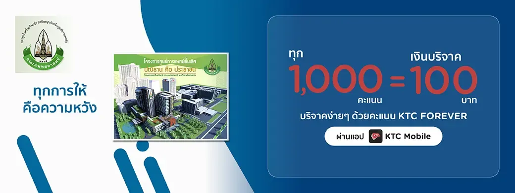 เชิญชวนสมาชิกบัตร KTC ร่วมเป็นส่วนหนึ่งในการสร้าง "ศูนย์การแพทย์ชั้นเลิศ" คณะแพทยศาสตร์ มหาวิทยาลัยขอนแก่น
