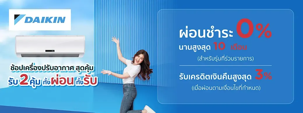 เฉพาะรุ่นที่ร่วมรายการ เมื่อผ่อน 0% ด้วยโปรโมชั่นโค้ดตามที่แบรนด์ ณ ร้านค้าที่ร่วมรายการตรวจสอบโปรโมชั่น และรุ่นที่ร่วมรายการ ณ จุดขาย