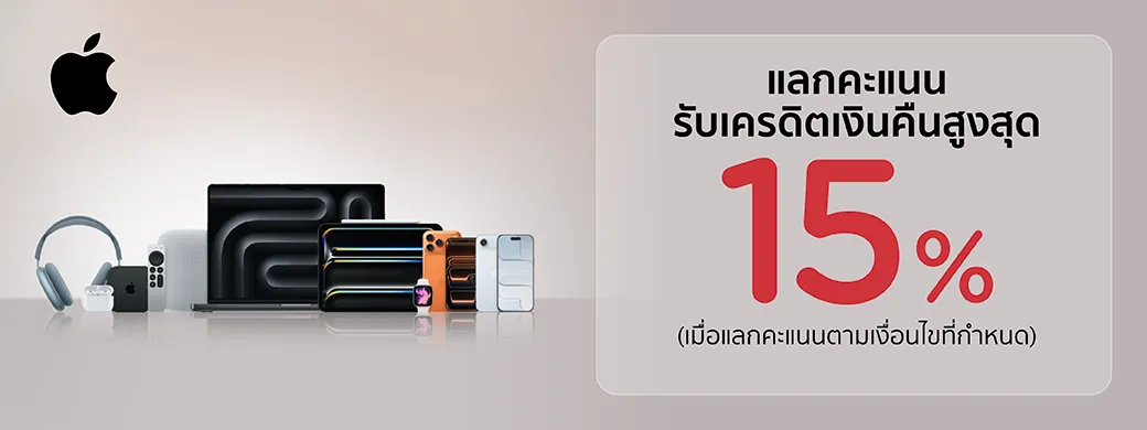 - เครดิตเงินคืนจะคำนวณจากคะแนนที่แลก