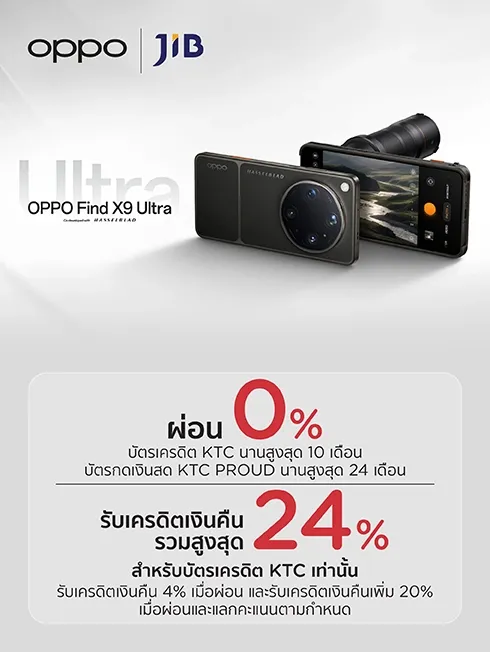 - สงวนสิทธิ์ร่วมรายการนี้เฉพาะยอดผ่อนสินค้า OPPO Find X9 Ultra และ Find X9s เท่านั้น
