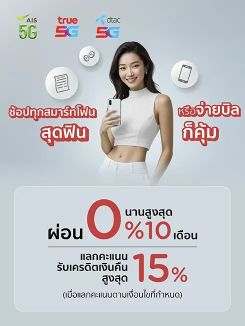 - เมื่อซื้อสินค้าที่ AIS, TRUE และ DTAC (ช่องทาง Offline) แลกคะแนน ณ จุดขาย ผ่าน EDC เพื่อรับเครดิตเงินคืน