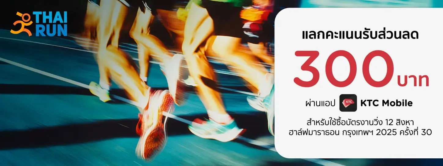 3.ส่วนลดสามารถใช้ได้สำหรับการซื้อบัตรที่ลิงก์https://race.thai.run/12aughalfmarathon/privateเท่านั้น กรอกโค้ดส่วนลดและชำระด้วยบัตรเครดิต KTC