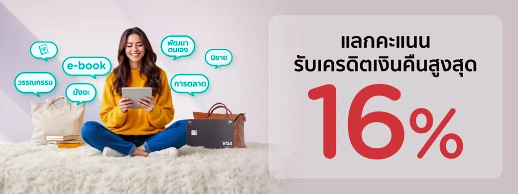 แลกคะแนนรับเครดิตเงินคืนสูงสุด 16%