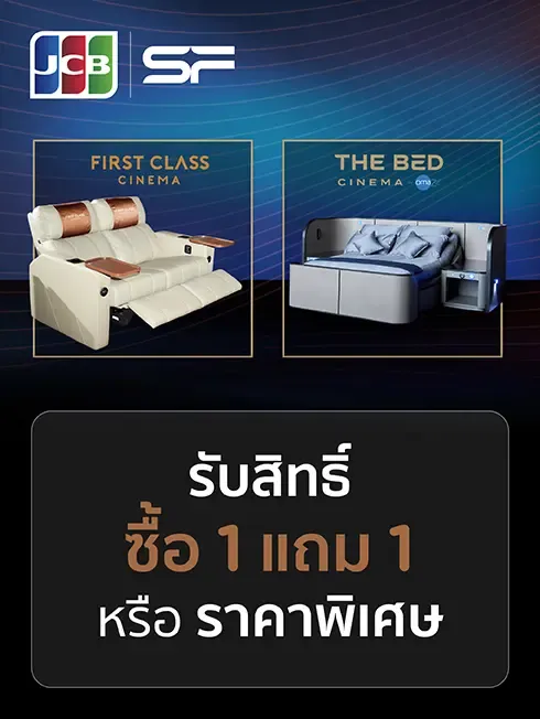 • รับสิทธิ์ซื้อบัตรชมภาพยนตร์ราคาปกติ 1 ที่นั่ง แถมฟรี 1 ที่นั่ง สำหรับที่นั่ง First Class หรือ The Bed (The Bed Cinema by Omazz) ในระบบ Digital 2D ณ สาขาที่ร่วมรายการ ได้แก่ Emprivé Cineclub, SF WORLD CINEMA Central World, SFX CINEMA Central Rama 9, SFX CINEMA Central Ladprao, SFX CINEMA The Crystal Ekamai-Ramindra (เฉพาะที่นั่ง First Class), SFX CINEMA MAYA Chiangmai, SFX CINEMA Central Pattaya, SFX CINEMA Terminal 21 Pattaya, SFX CINEMA Central Phuket