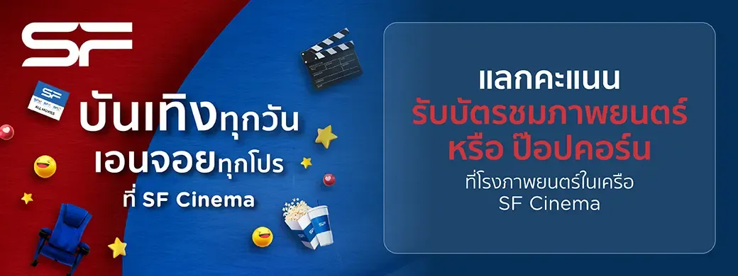 ใช้คะแนน KTC FOREVER ทุก 1,000 คะแนน แทนเงินสด 100 บาทแลกรับ ณ จุดบริการ Box office SF ผ่าน เครื่องรูดบัตร