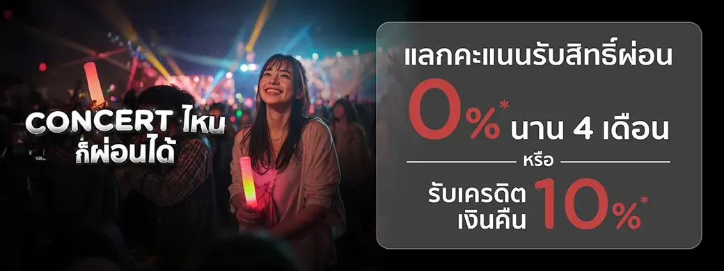 แลกคะแนนรับสิทธิ์ผ่อนชำระ 0% นาน 4 เดือนที่แพลตฟอร์มจองคอนเสิร์ตที่ร่วมรายการ