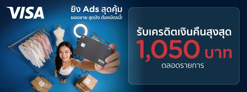 - รายการส่งเสริมการขาย (“รายการ”) นี้ บริษัท บัตรกรุงไทย จำกัด (มหาชน) หรือ เคทีซี จัดทำขึ้นเพื่อมอบสิทธิประโยชน์ให้แก่สมาชิกบัตรเครดิต KTC VISA ทุกประเภท (“สมาชิก”) ที่มียอดชำระค่าโฆษณา Facebook บนแพลตฟอร์ม Facebook โดยตรง ตั้งแต่ 30,000 บาทขึ้นไป/เซลส์สลิป ยกเว้นรายการการเติมเงินเข้าบัญชีโฆษณา Facebook ในช่วงระหว่างวันที่ 1 กุมภาพันธ์ 2569 – 30 เมษายน 2569 (“ระยะเวลารายการ”) ตามเงื่อนไขที่กำหนด