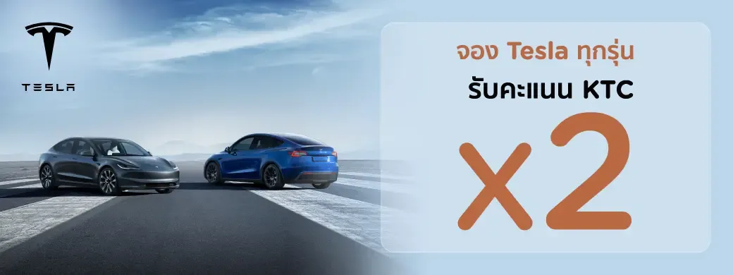 จองรถยนต์ไฟฟ้า Tesla ทุกรุ่น ผ่านบัตรฯ สมาชิกฯ จะได้รับคะแนน KTC X2 (คะแนนปกติ 1 เท่า และ คะแนนพิเศษ 1 เท่า)