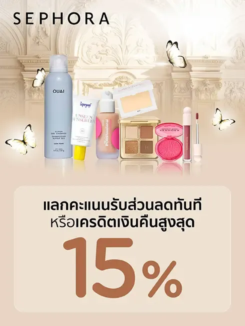 แลกคะแนนรับส่วนลดทันทีหรือเครดิตเงินคืนสูงสุด 15% ที่ SEPHORA