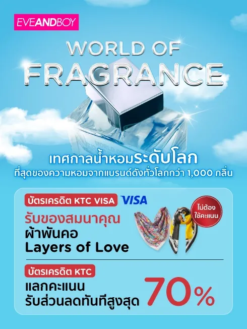 - สำหรับสมาชิกบัตรเครดิต KTC VISA เมื่อสมาชิกฯ ใช้จ่ายครบ 4,999 บาท / เซลส์สลิป (ยอดสุทธิหลังหักส่วนลดแล้ว) และลงทะเบียนผ่านทางเว็บไซต์ เพื่อรับผ้าพันคอ Layers of love จำนวน 1 ชิ้น (คละลาย) ได้ ณ Eveandboy Event World of Fragrance ที่ Terminal 21 Pattaya ภายวันที่สมาชิกมียอดใช้จ่ายผ่านบัตรฯ ตามเงื่อนไขที่กำหนดเท่านั้น