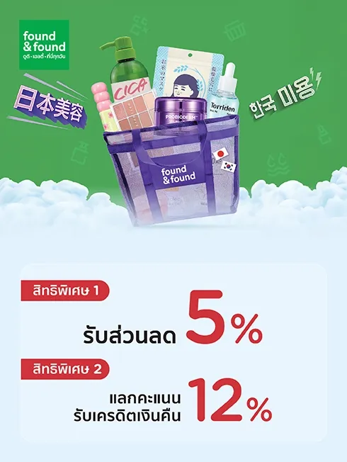 สมาชิกที่มียอดใช้จ่ายผ่านบัตรฯ รับส่วนลด 5% ไม่กำหนดยอดใช้จ่ายขั้นต่ำ ที่ร้าน found & found ทุกสาขา (ยกเว้นสาขา found & found ใน Mitsukoshi และ Foodland)