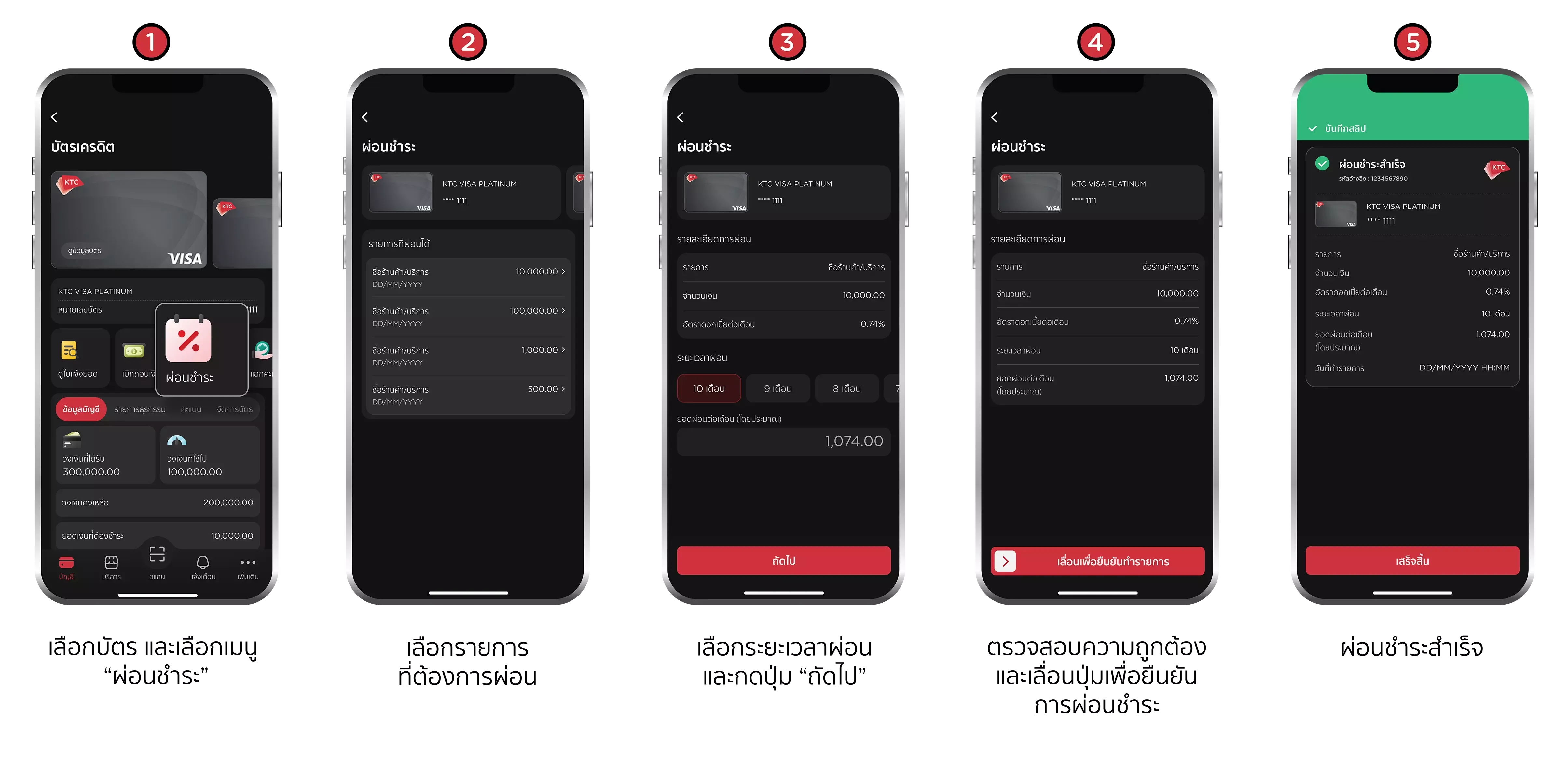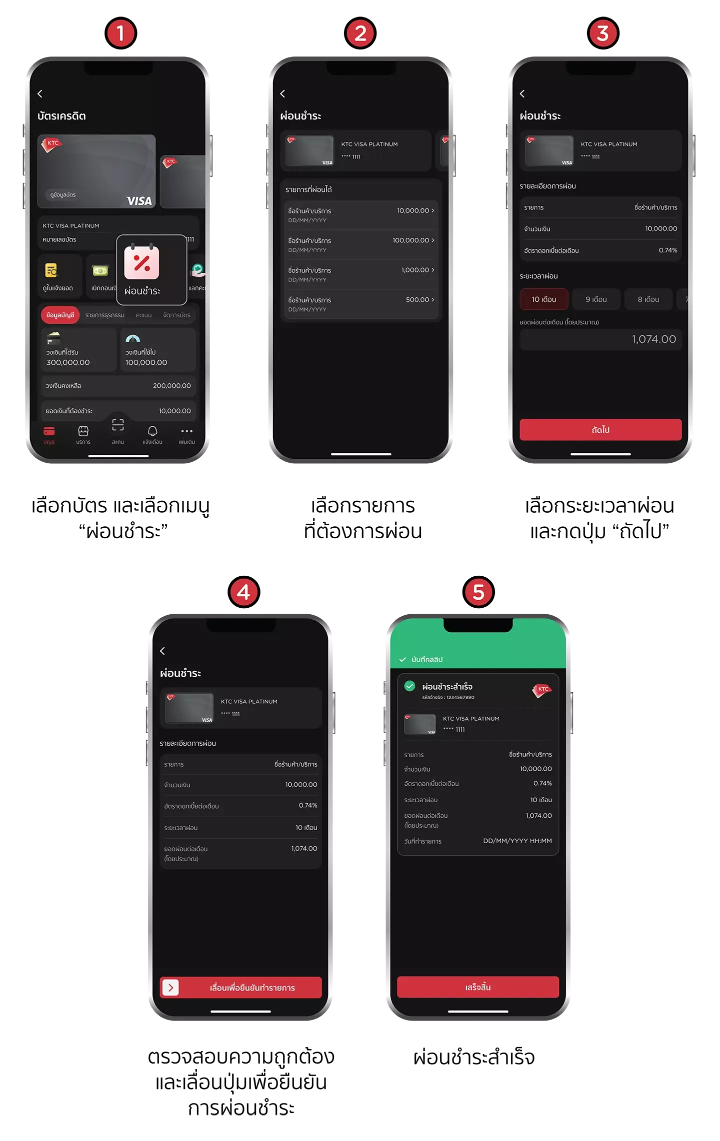 หมายเหตุ : จำกัดการใช้คะแนนสูงสุดไม่เกินยอดใช้จ่ายต่อรายการเท่านั้น สงวนสิทธิ์การแลกรับเครดิตเงินคืน / 1 เซลส์สลิปเท่านั้น โดยลงทะเบียนผ่านทาง SMS หรือ Website เคทีซีจะทำการเครดิตเงินคืนเข้าบัญชีบัตรฯ ของสมาชิก ภายใน 60 วัน นับจาก วันสุดท้ายของแต่ละเดือนตามรอบปฏิทิน