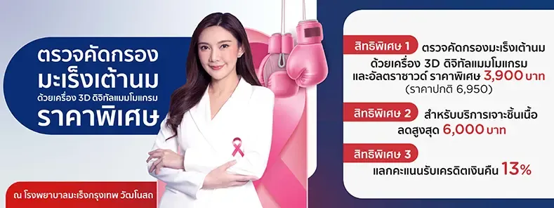 สิทธิพิเศษที่ 1:ชุดตรวจมะเร็งเต้านมด้วย Digital Mammogram พร้อมอัลตราซาวนด์ ราคาพิเศษ 3,900 บาท