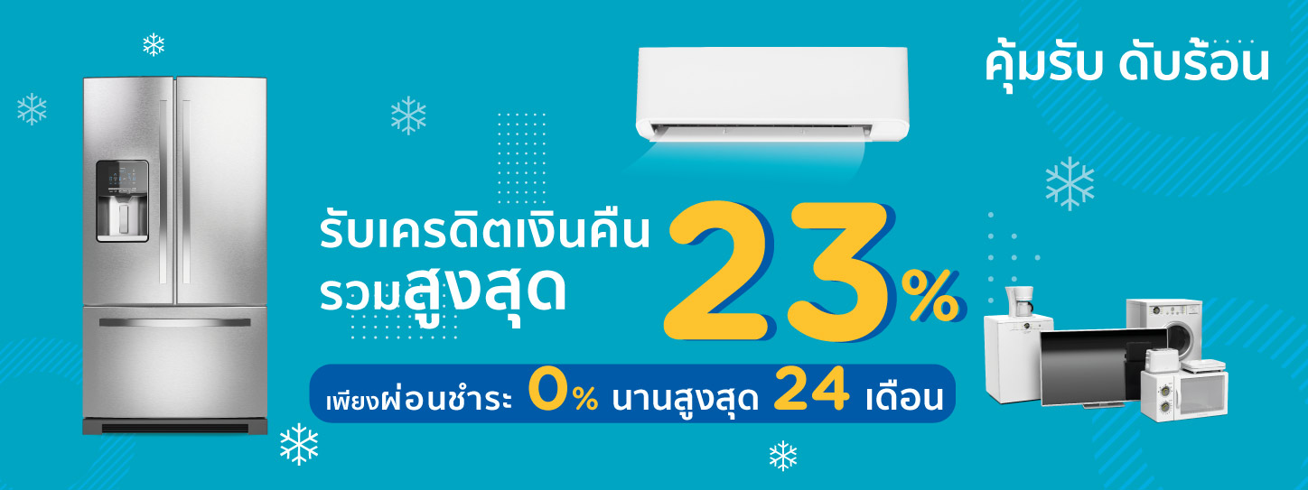 » โปรโมชั่นรับเงินเครดิตคืนเพิ่มจากแบรนด์ สูงสุด 5% (เฉพาะเครื่องปรับอากาศรุ่นที่ร่วมรายการตามที่แบรนด์กำหนด)