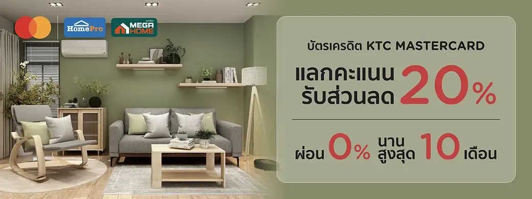 **งดเว้นการให้คะแนนสะสม KTC ทุกประเภทสำหรับรายการผ่อน 0% ที่ โฮมโปรและเมกาโฮม **