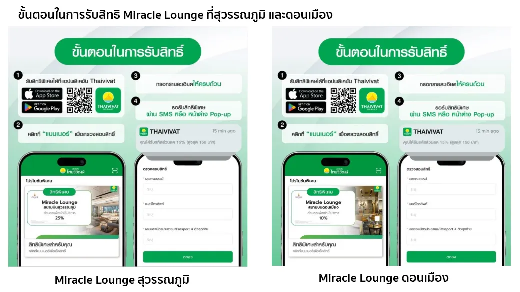 เงื่อนไขการรับส่วนลด Miracle lounge สุววรณภูมิ และ Miracle Lounge ดอนเมือง