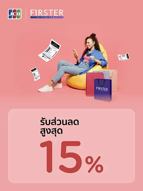 เมื่อช้อปสินค้าที่ร่วมรายการ ไม่มียอดใช้จ่ายขั้นต่ำ ผ่าน www.firster.com หรือแอปพลิเคชัน FIRSTER BY KING POWER พร้อมระบุโค้ด "JCB1525" และชำระเงินด้วยบัตรเครดิต KTC JCB ทุกประเภท