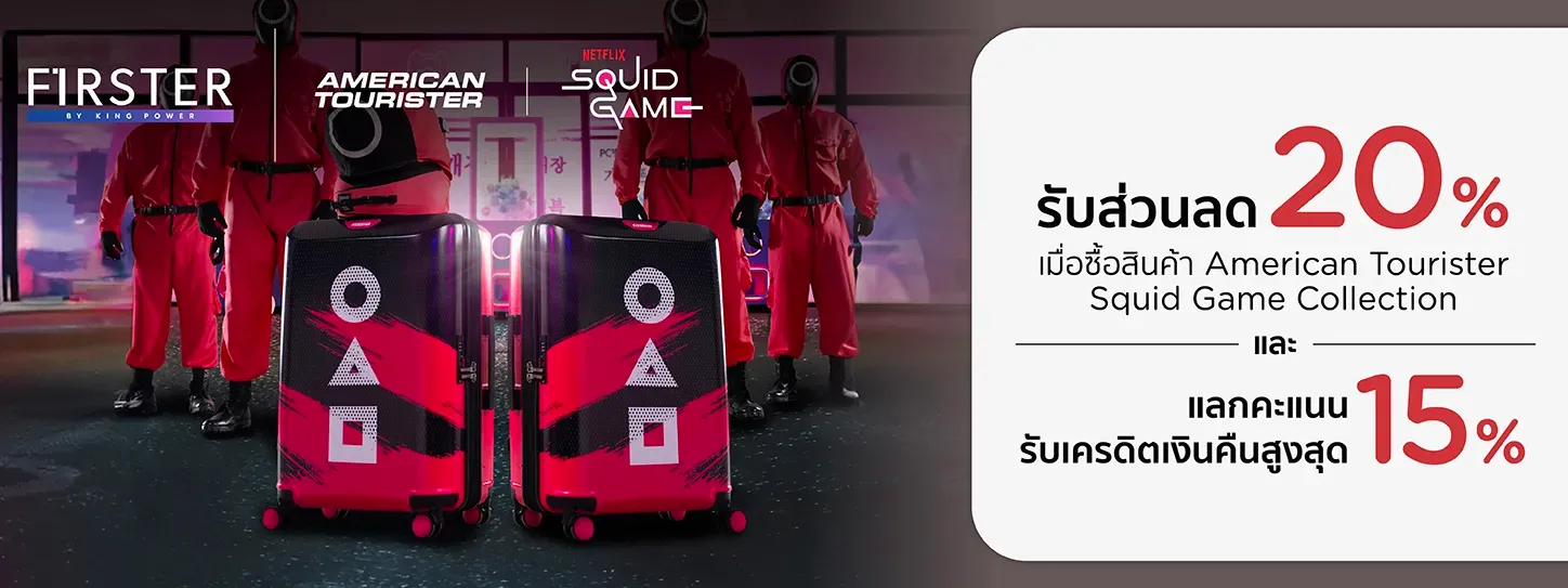 โปรโมชั่นที่ Firster รับส่วนลด 20% สินค้า American tourister Squid Game Collection กับบัตรเครดิต KTC