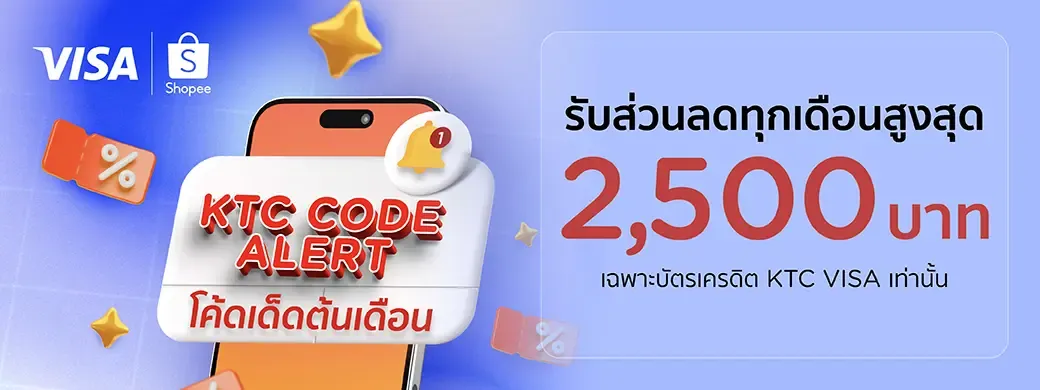 - ขอสงวนสิทธิ์ยกเว้นสมาชิกบัตรเครดิต KTC MASTERCARD, KTC JCB, KTC UNIONPAY ทุกประเภท ไม่สามารถเข้าร่วมรายการนี้ได้