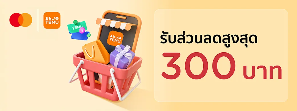 เมื่อมียอดซื้อสินค้าตั้งแต่ 1,000 บาทขึ้นไป และชำระด้วยบัตรเครดิต KTC MASTERCARD ทุกประเภท หรือบัตรกดเงินสด KTC PROUD MASTERCARD ผ่านแอปพลิเคชั่น Temu ที่นี่
