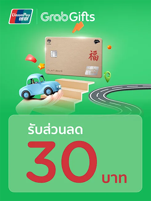 เมื่อเดินทางกับ Grab Transport ขั้นต่ำ 120 บาท/เที่ยวโดยสาร และชำระเงินด้วยบัตรเครดิต KTC UNIONPAY ทุกประเภทหรือบัตรกดเงินสด KTC PROUD UNIONPAY บนแอพพลิเคชั่น Grab ในประเทศไทย