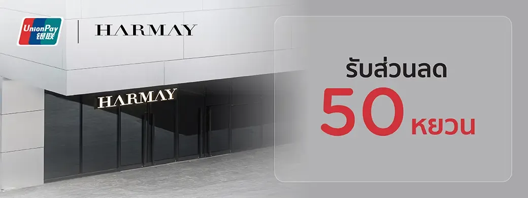 HARMAY x UnionPayรับส่วนลด 50 หยวน1 พ.ค. 68 - 31 มี.ค. 69
