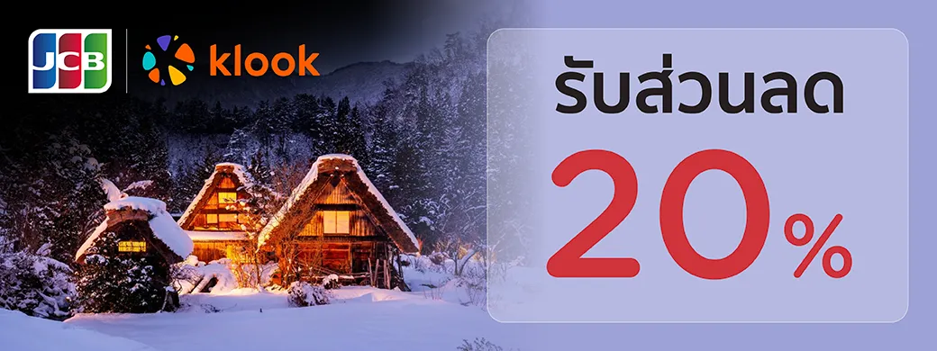- รับส่วนลดเพิ่ม 20% สำหรับการจองจองกิจกรรมในญี่ปุ่นบน Klook โดยมูลค่าส่วนลดสูงสุดไม่เกิน 30 ดอลลา