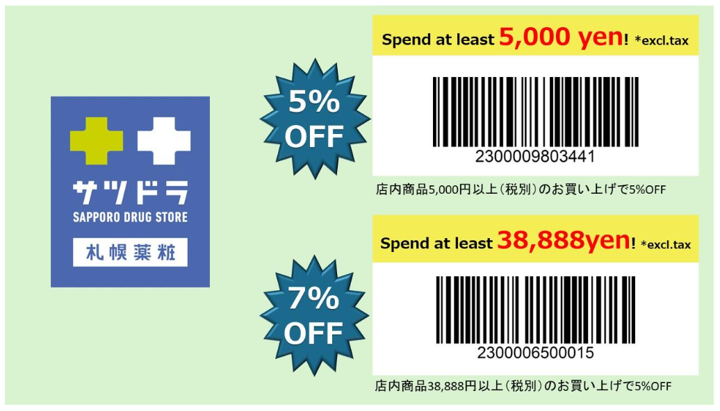 • รับส่วนลด 7% เมื่อใช้จ่ายตั้งแต่ 38,888 เยนขึ้นไป