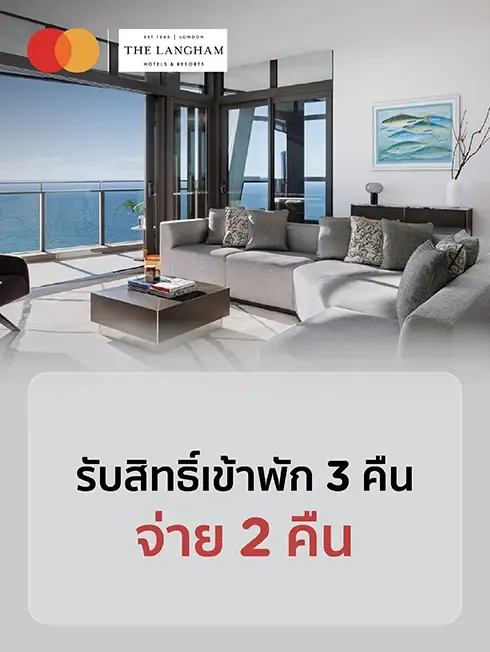 เมื่อจองห้องพักล่วงหน้าผ่านทางhttps://ktc.promo/reservation-MCxLanghamพร้อมรหัสโปรโมชั่น "3HMCLHG” และชำระเงินด้วยบัตรเครดิต KTC MASTERCARD ทุกประเภทและบัตรกดเงินสด KTC PROUD MASTERCARD ที่ The Langham Hotels and Resorts ที่ร่วมรายการ