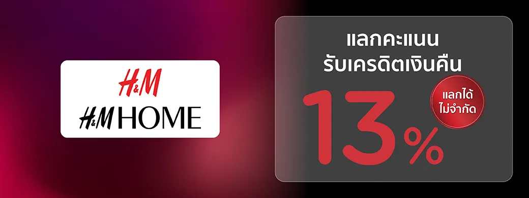 แลกคะแนนรับเครดิตเงินคืน 13% (แลกได้ไม่จำกัดยอดสูงสุดตลอดรายการ)