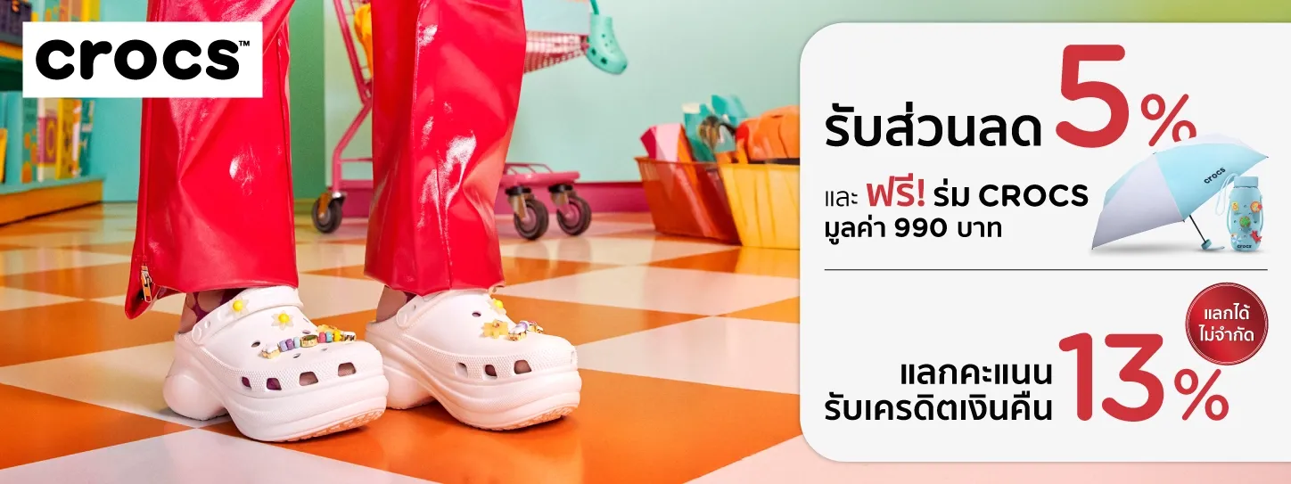 - สามาถใช้ได้เฉพาะร้าน Crocs Shop ทุกสาขา และโปรดตรวจสอบเงื่อนไขเพิ่มเติม ณ จุดขาย