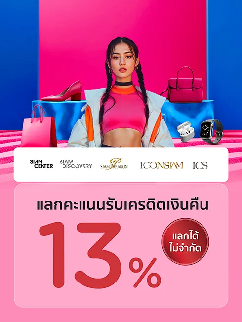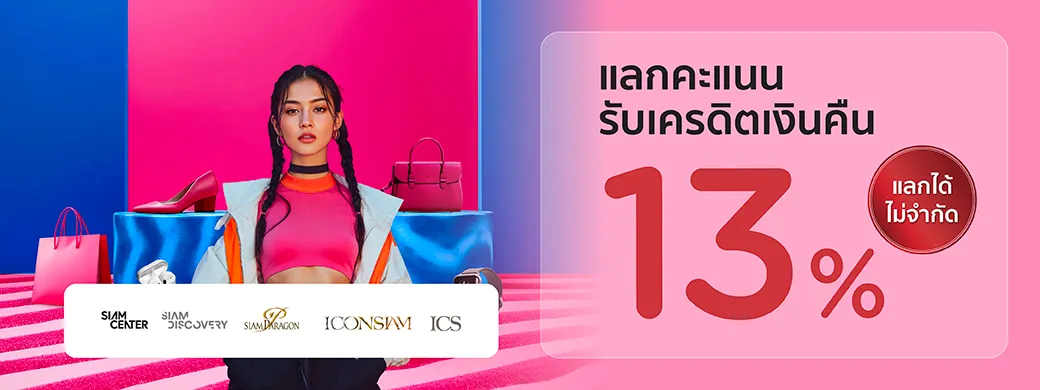แลกคะแนนรับเครดิตเงินคืน 13%