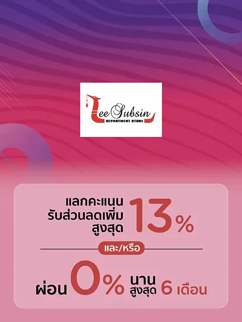 แลกคะแนนรับส่วนลดเพิ่มสูงสุด 13% และ/ หรือ ผ่อน 0% นานสูงสุด 6 เดือน