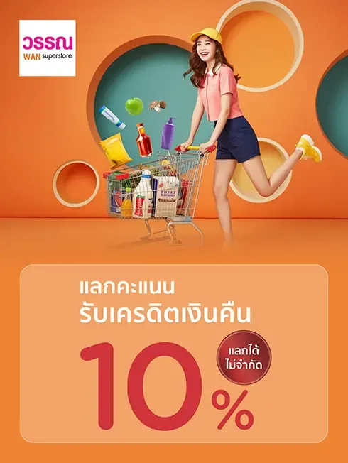 แลกคะแนนรับเครดิตเงินคืน 10% (ไม่จำกัดยอดแลกคะแนนตลอดรายการ)