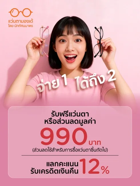 *ส่วนลดใช้สำหรับการซื้อแว่นตาชิ้นถัดไป ภายในวันที่มียอดใช้จ่ายเท่านั้น