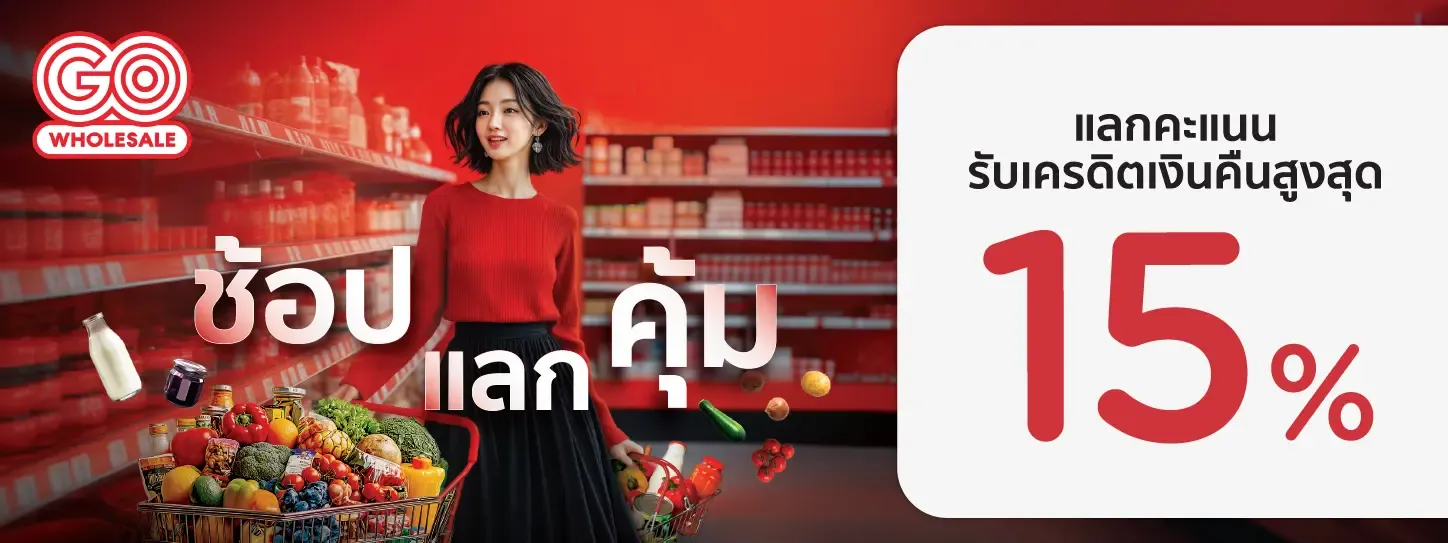 เมื่อใช้จ่ายผ่านบัตรฯที่ Go Wholesale ทั้งช่องทางหน้าร้านและออนไลน์