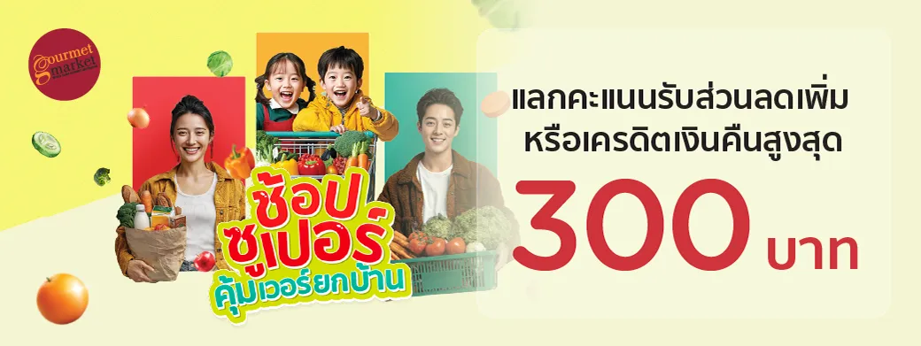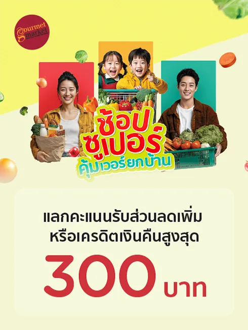 สำหรับ Gourmet Market ทุกสาขา เมื่อมียอดใช้จ่ายครบ 800 บาท ขึ้นไป/เซลส์สลิป