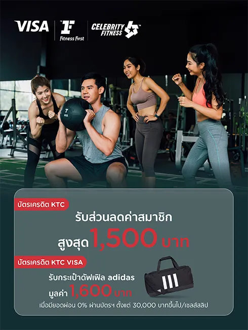 เมื่อใช้ 1 คะแนน KTC FOREVER รับส่วนลดค่าสมัครสมาชิกที่ Fitness First / Celebrity Fitness ตามเงื่อนไขที่กำหนด