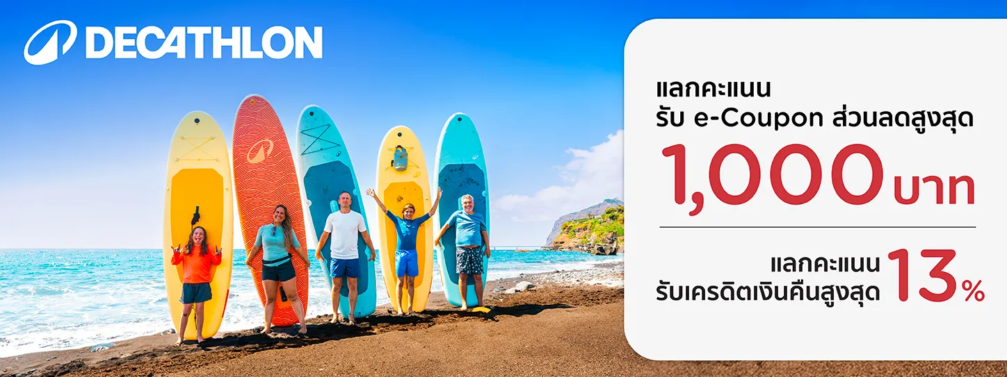 *โปรโมชั่นแลกรับเครดิตเงินคืน สามารถใช้ได้ทั้งหน้าร้าน Decathlon ทุกสาขา และ Online ที่ www.decathlon.co.th*