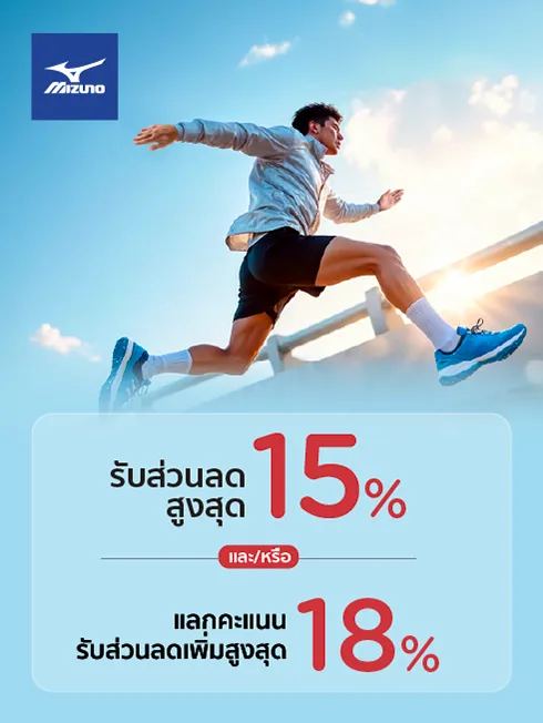 » รับส่วนลดสูงสุด 15% เมื่อซื้อสินค้าในร้าน Mizuno