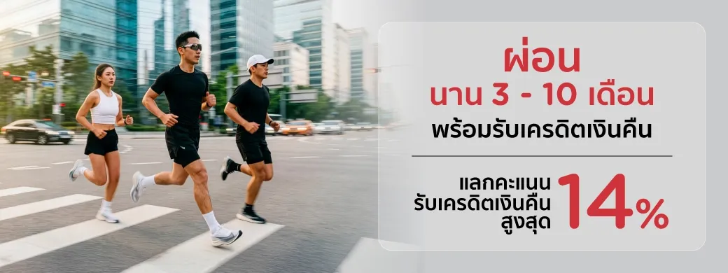แลกคะแนนรับเครดิตเงินคืนสูงสุด 14%