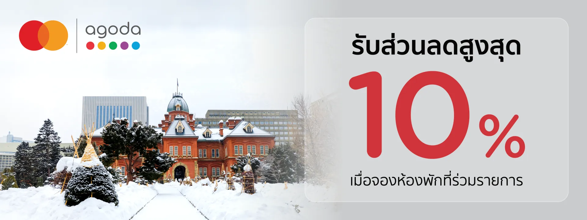 เมื่อจองผ่าน www.agoda.com/thmastercard และชำระด้วยบัตรเครดิต KTC MASTERCARD ทุกประเภท